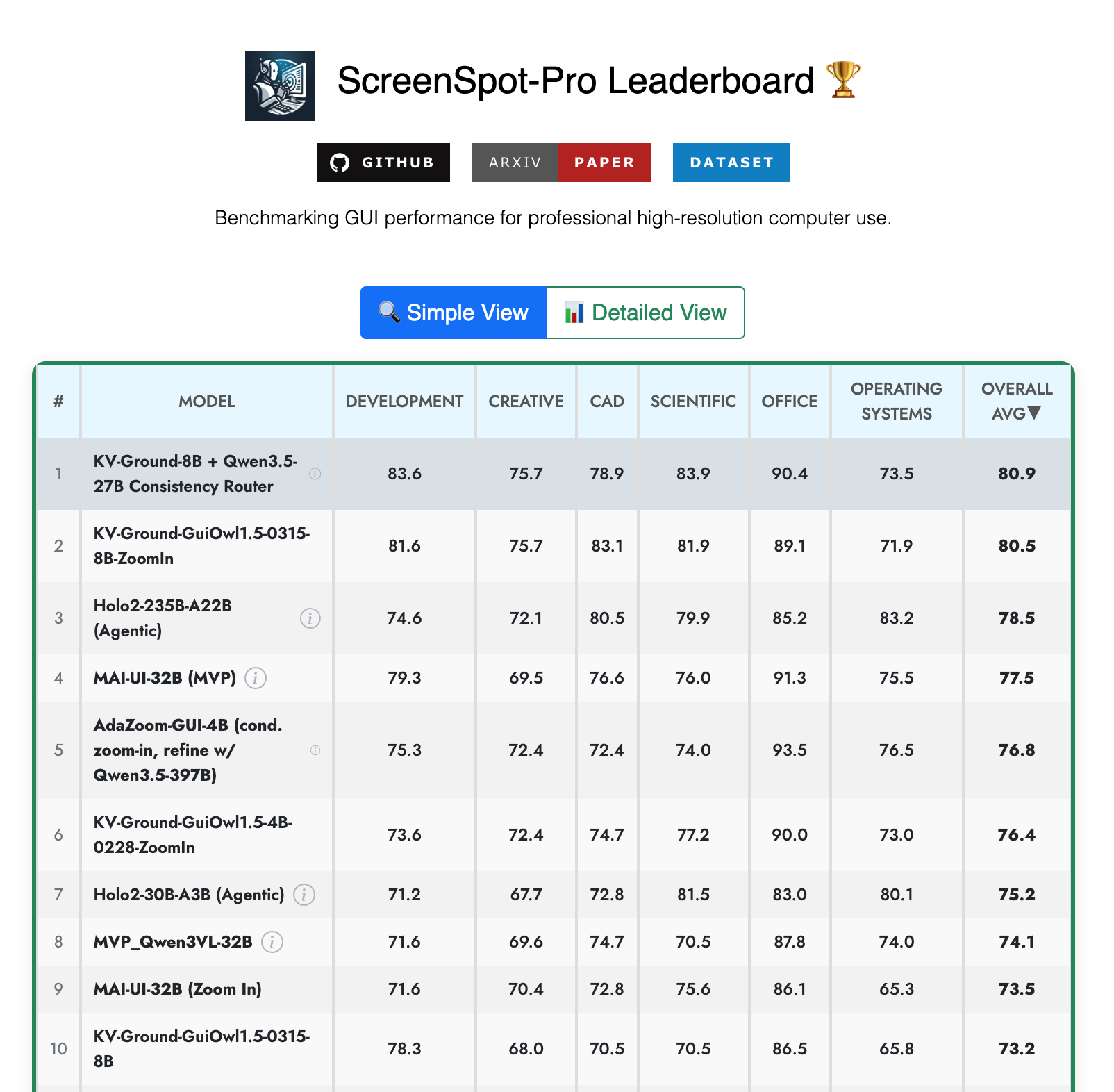 Krish ChelikavadaWe published a new research paper, Zoom Consistency, and it currently holds the #1 spot on the ScreenSpot-Pro Leaderboard, the main benchmark for measuring how well AI can use professional software.